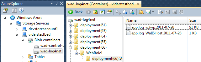 …and that’s it. Now you can try to run the application and observe a container called ‘wad-log4net’ will be created in your blob service account that will contain the logs: