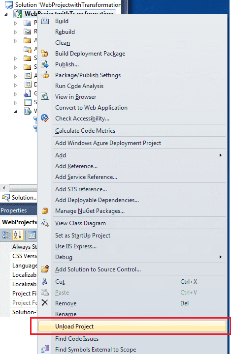 Step 1: Unload the project in Visual Studio